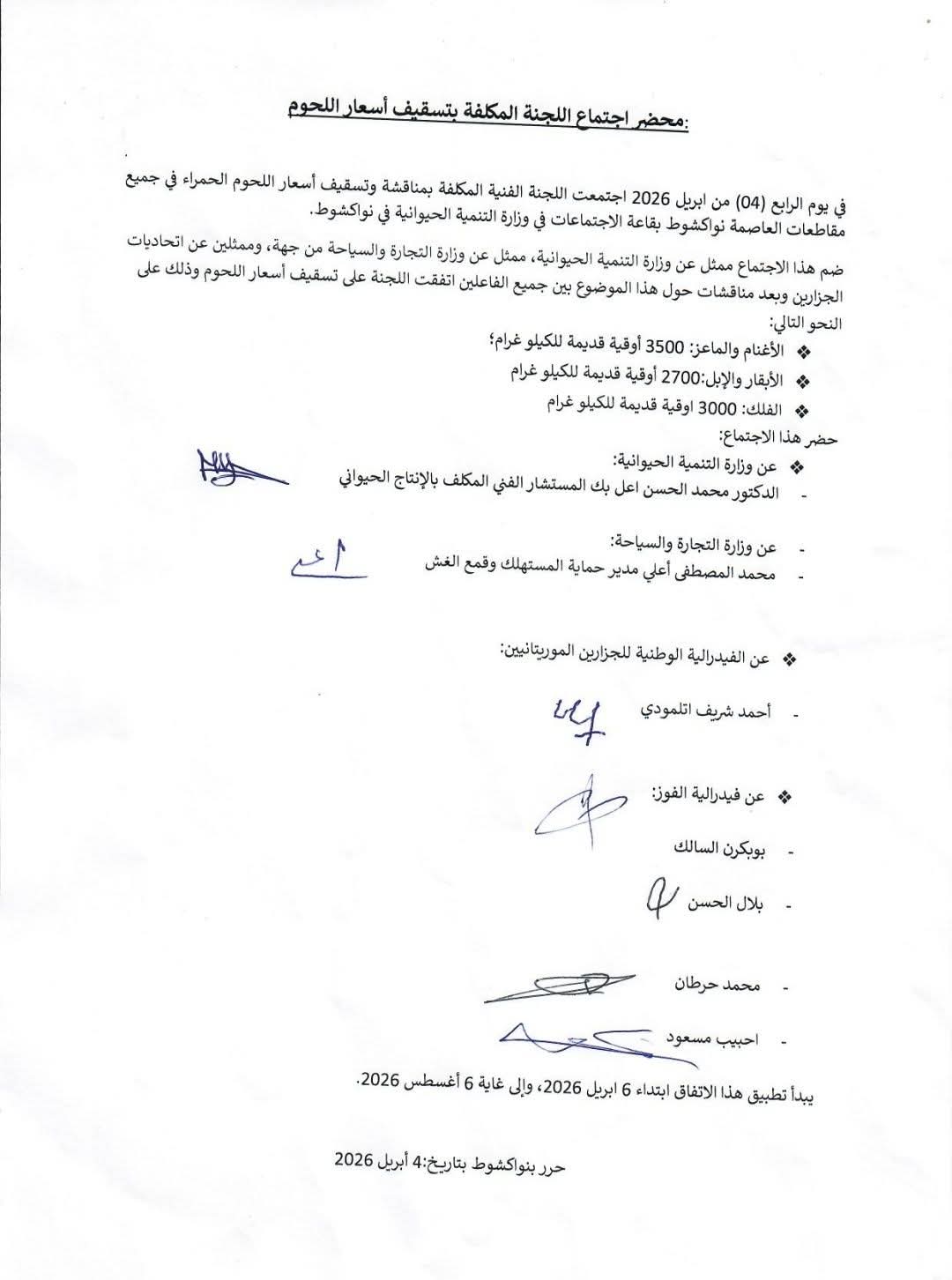 اعتماد تسقيف لأسعار اللحوم الحمراء ابتداء من الاثنين في موريتانيا