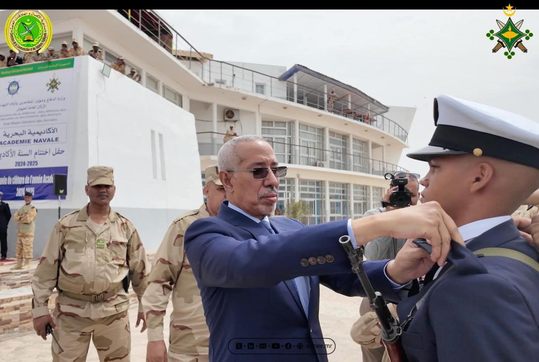 وخلال الحفل، تم تبادل كلمات بين قائد البحرية الوطنية، اللواء البحري أحمد السيد بنعوف، ومدير الأكاديمية البحرية، العقيد البحري محنضبابه أحمد حمدي، سلطت الضوء على أهمية هذا الحدث في سياق الجهود الوطنية لتعزيز القدرات البشرية العاملة في المجال البحري، ومواكبة التحديات المتزايدة المرتبطة بالأمن البحري والتنمية الساحلية.
