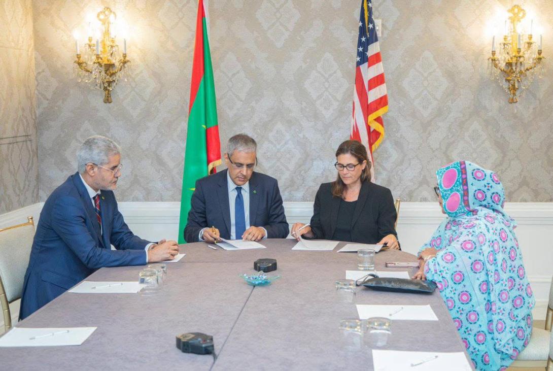 حضر توقيع الاتفاقية وزير الاقتصاد والمالية سيد احمد ولد أبوه وسفيرة موريتانيا في واشنطن سيسة بنت بيده