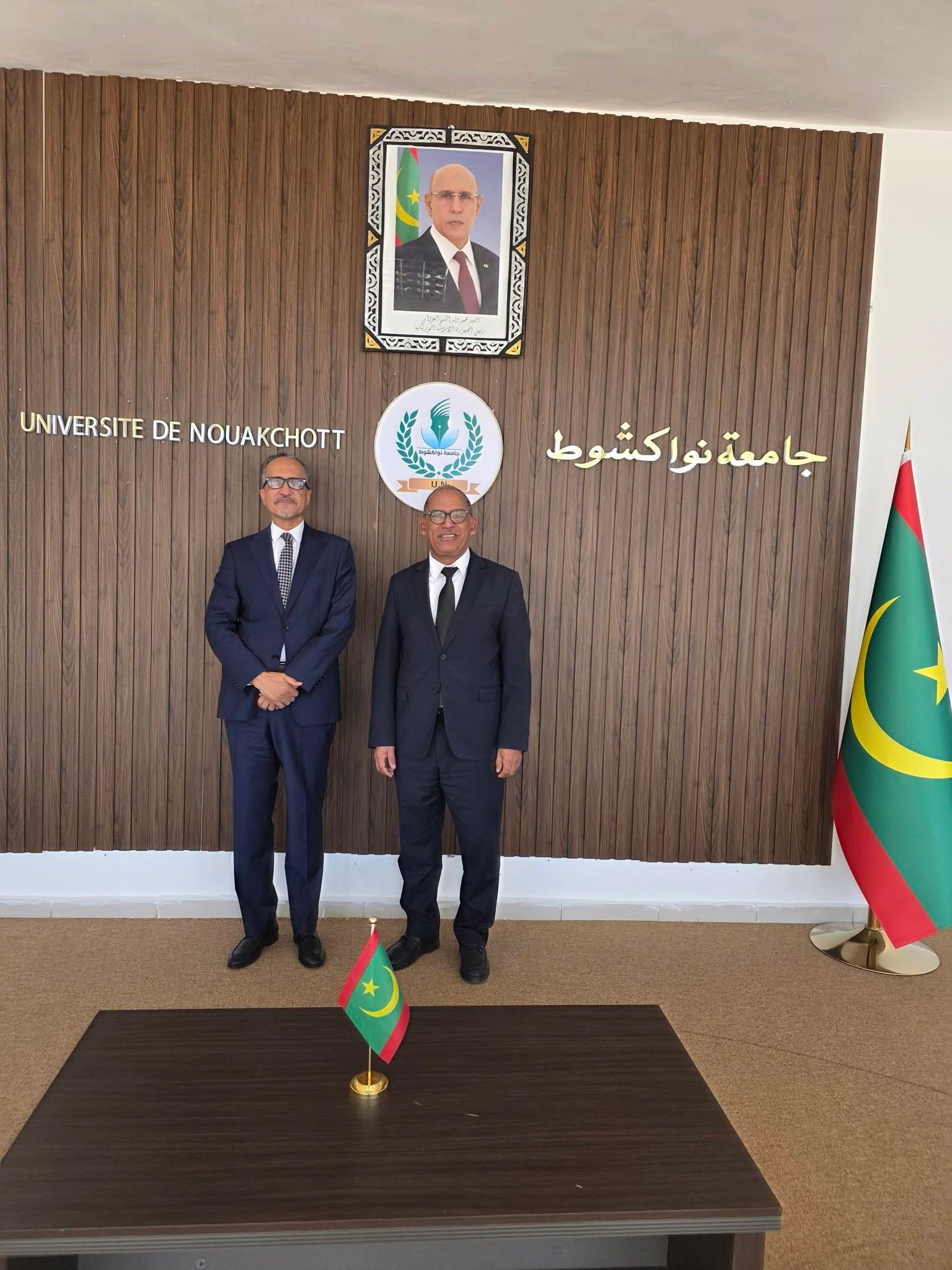 التيار (نواكشوط) - استقبل رئيس جامعة نواكشوط، البروفسور علي محمد سالم البخاري، الاثنين، رئيس مجلس جائزة شنقيط، الدكتور إسلكو ولد أحمد ايزيد بيه، وذلك في إطار بحث آفاق التعاون بين الجامعة ومجلس الجائزة.