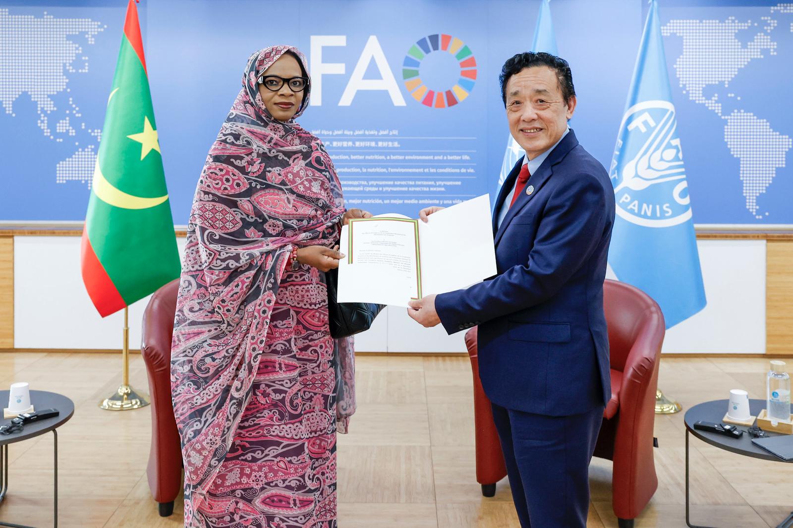 خديجة امبارك فال تقدم أوراق اعتمادها ممثلة دائمة لموريتانيا لدى منظمة الأغذية والزراعة