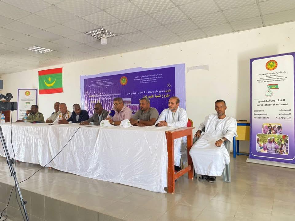التيار (انواكشوط) - أشرف مستشار والي الحوض الشرقي للشؤون الاقتصادية، آبو سيدي ويلي، اليوم في مدينة النعمة، على انطلاق مرحلة التكوين وتوقيع العقود الخاصة بابتعاث دفعة من 11 متطوعا وطنيا، في إطار اتفاقية ثلاثية تجمع برنامج “وطننا”، والإدارة العامة للمجموعات المحلية، ومنظمة “متطوعو فرنسا”، وذلك ضمن الجانب التطوعي من مشروع تنمية إقليم كوش.