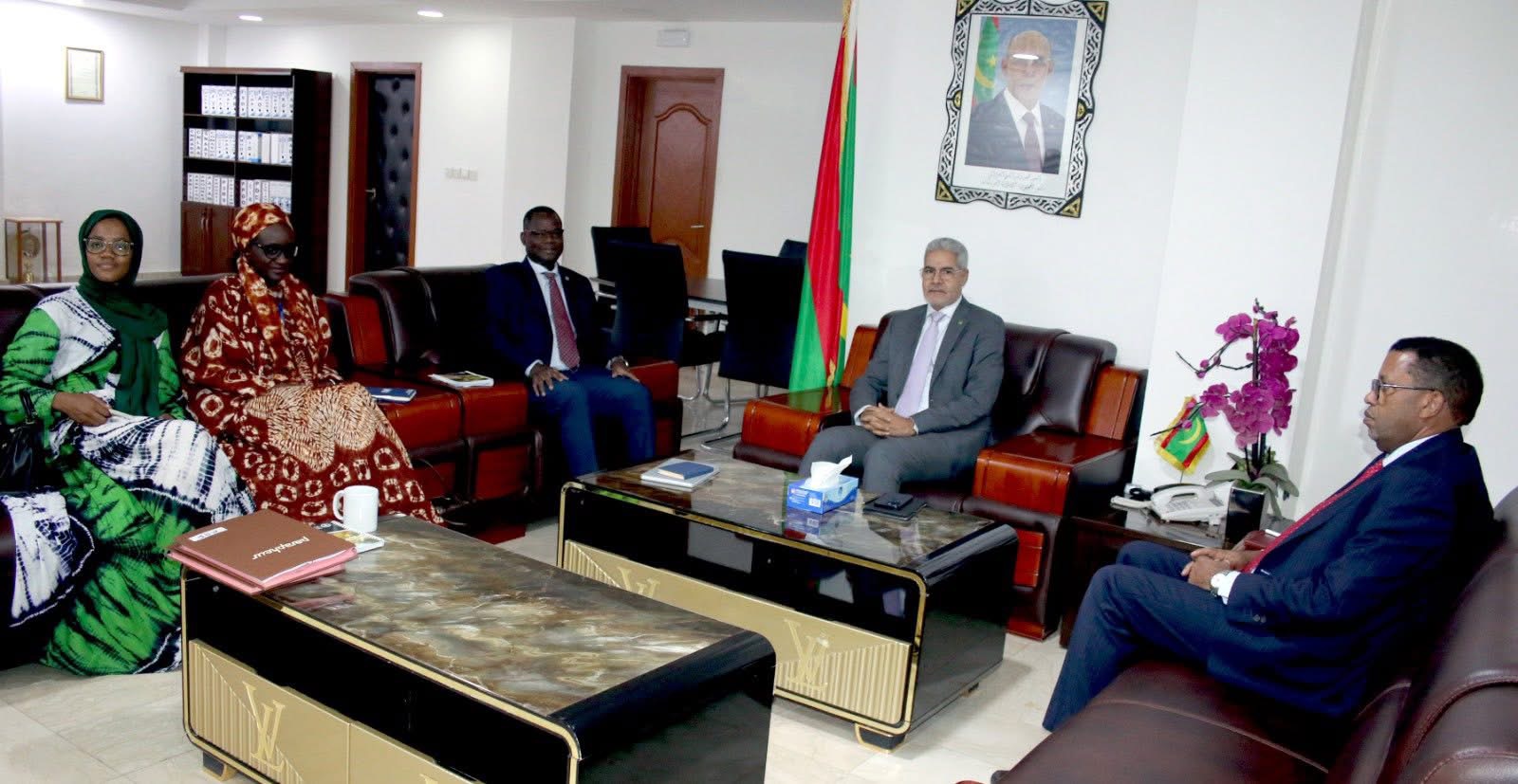 وحضر اللقاء الأمين العام للوزارة أحمد سالم ولد العربي، ومدير البرمجة والإحصاء والتعاون والمتابعة والتقييم عبد الله ولد باب زياد.